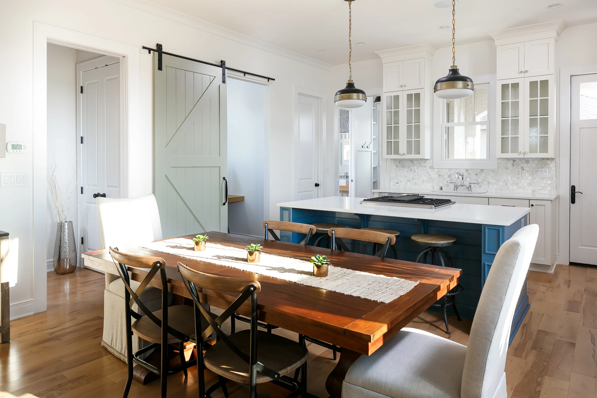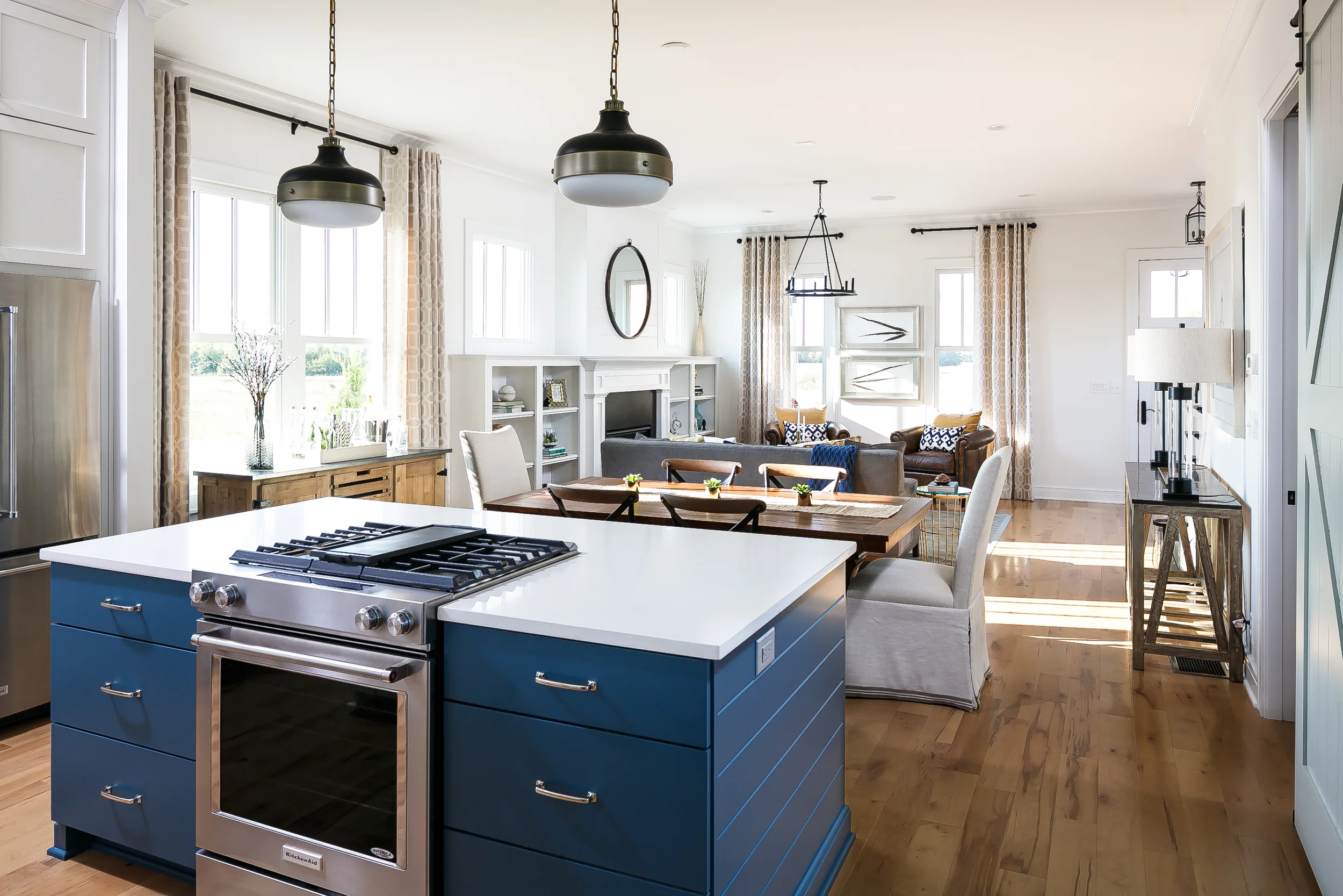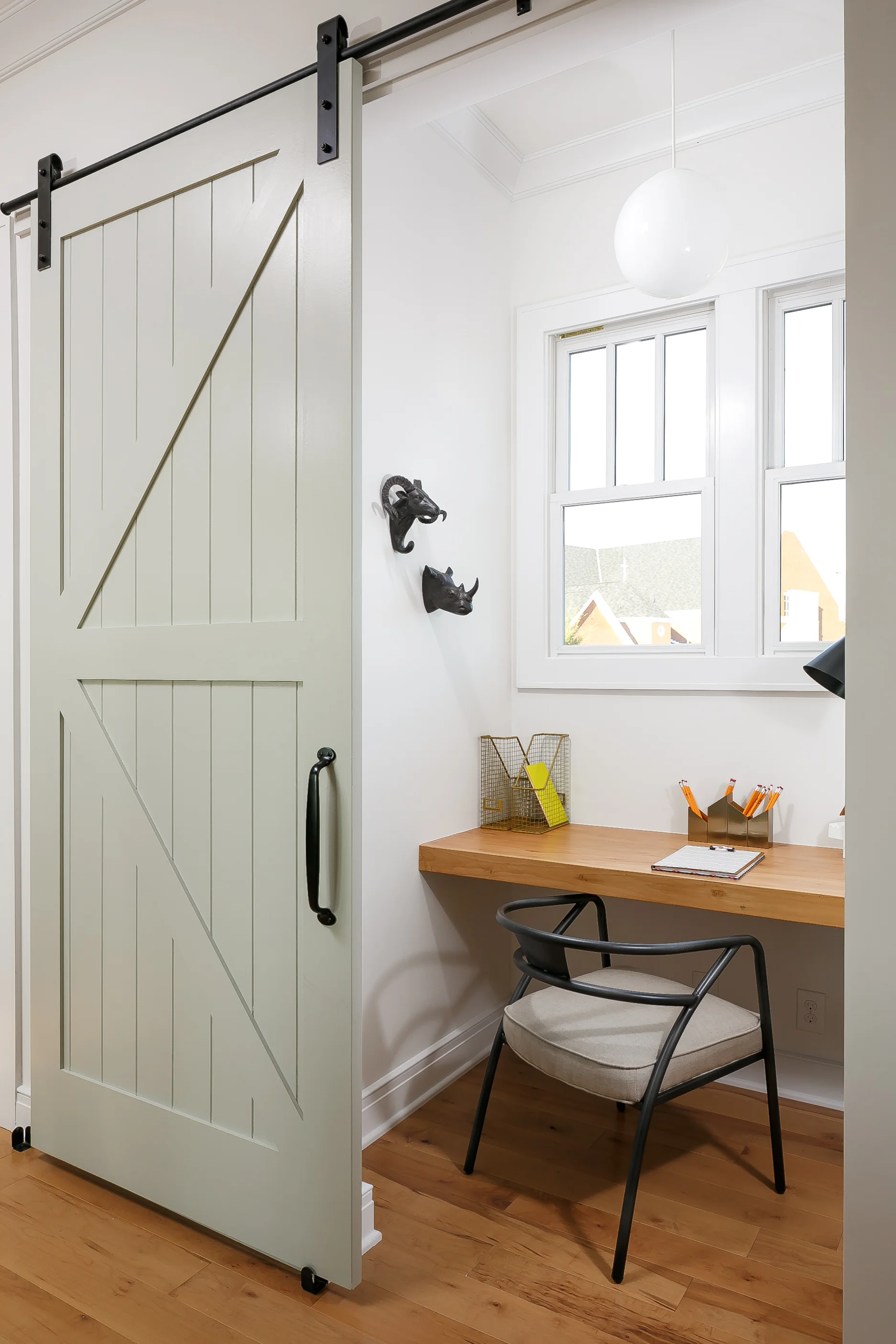 This home was built in Norton Commons as part of the Kosair Children’s Hospital Raffle House program in 2015. The architectural style is distinctly Arts & Crafts, with exposed rafter tails along with columns accented by brackets & tenons. Its a 2 story design with all bedrooms on the second floor, perfect for a family. The open first floor includes a living room, dining room, kitchen with access to a rear covered porch, informal rear entry and office niche with a stylish barn door for privacy. In addition to the rear covered porch, the outdoor rooms include a covered front porch and a thoughtfully landscaped rear patio.