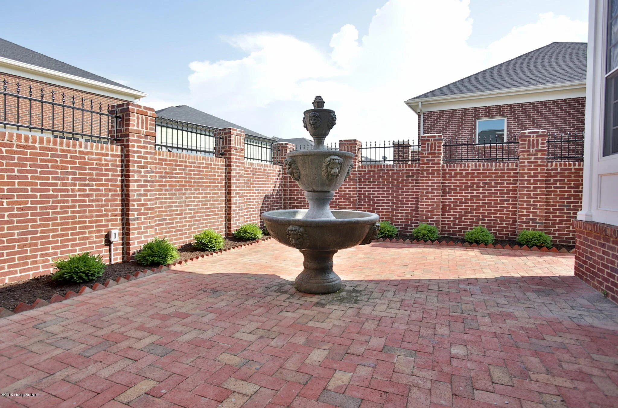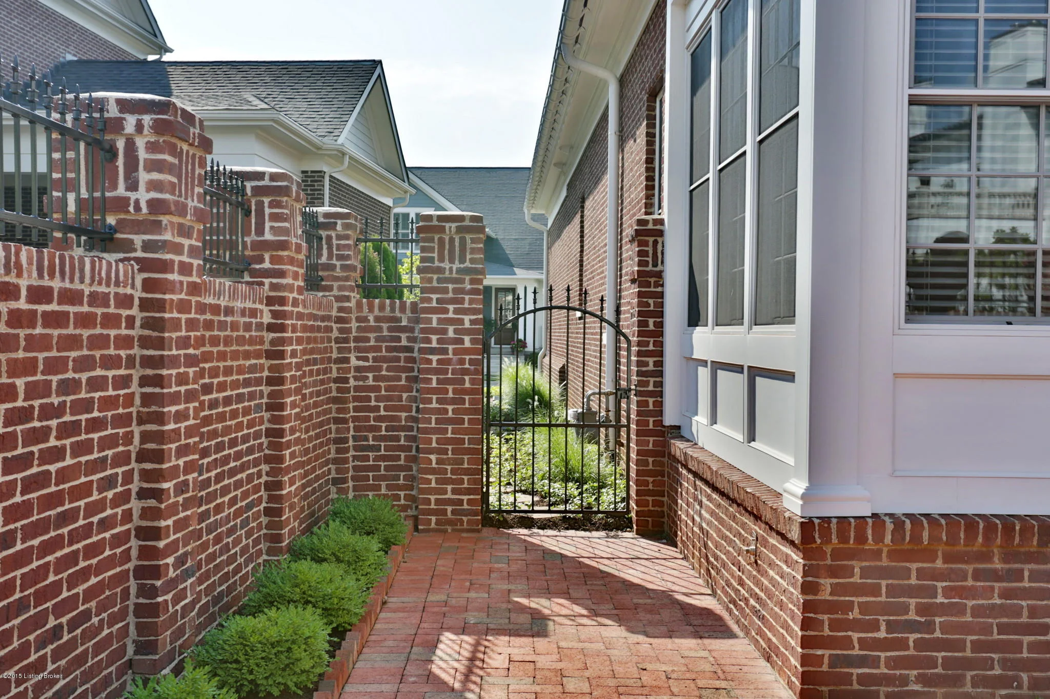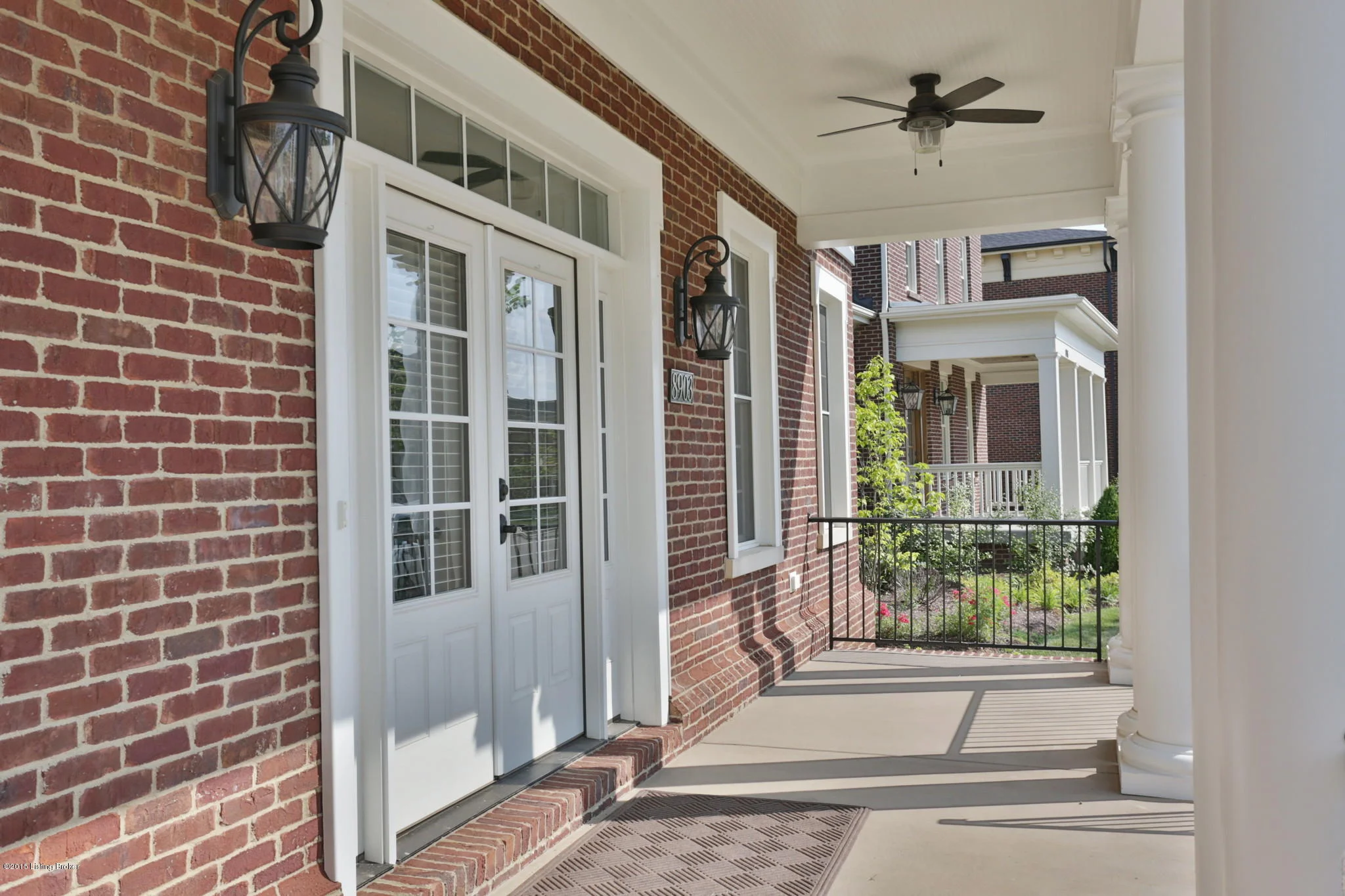 The Greek Revival architecture featured in this Norton Commons includes stately columns, dentil moulding and a brick water table at the foundation. It was designed for a multi-generational family with two owners suites on the first floor and an elevator to access the lower level’s bedrooms, living area and kitchen. A sunroom adorns the rear master suite on the first floor with access to a brick patio enclosed by a thoughtful garden wall.